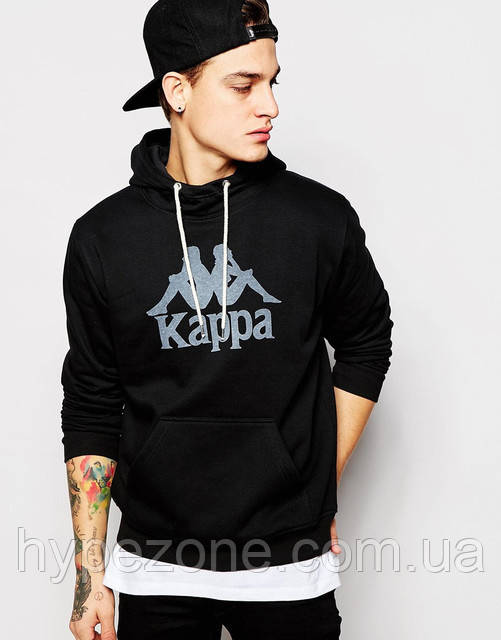 Худі чорна чоловіча з принтом Kappa Каппа | Толстовка